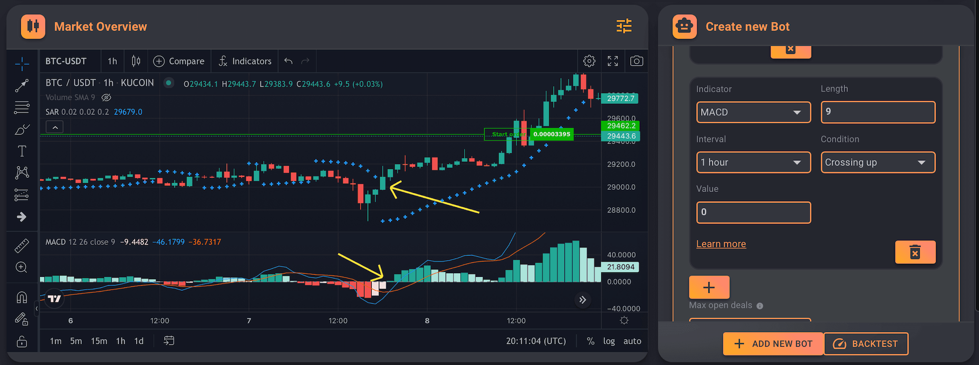 In this article, we explain what is the Parabolic SAR Indicator (PSAR) indicator and how it can be used in bot trading.